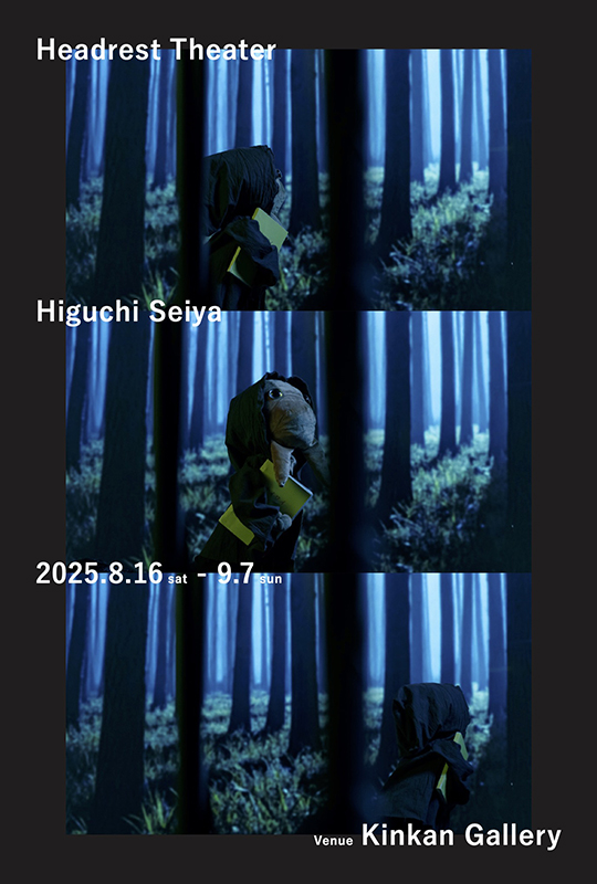 樋口誠也は、写真を中心に映像制作を行ってきた作家です。樋口はSNSをはじめとした現代の写真の在り方や人との関わり方を、ユーモアを交えて探ってきました。本展「Headrest Theater」では、人類が絶滅した世界を舞台に、生命を得たパペットたちが人間を模倣しながら生活する様子を描いたインスタレーションを展開します。ゲームや映画、写真の様式を織り交ぜた構成の中で、ぎこちなくも不気味に人間らしさを演じるパペットたちの姿は、写真というメディアが担ってきた「記録」の役割を浮かび上がらせます。
