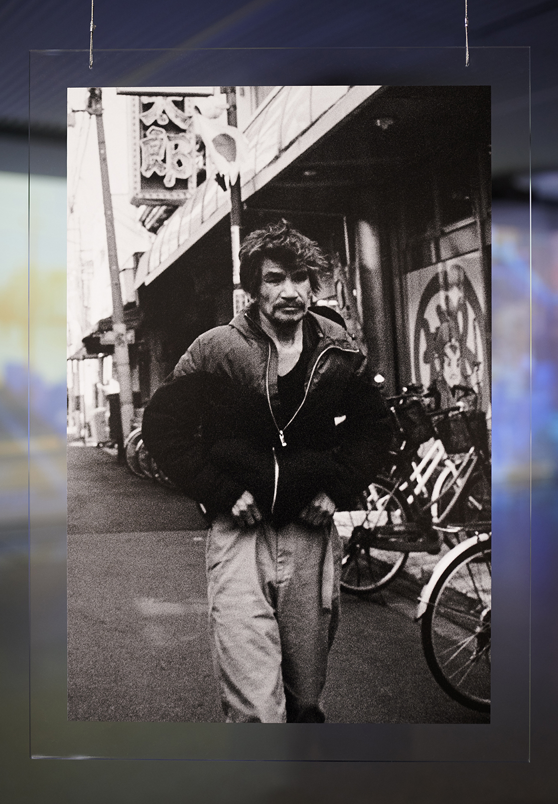 岸幸太は2025年11月から2026年1月まで長野県立美術館交流スペースにて、東京の山谷、横浜の寿町、大阪の釡ヶ崎に暮らす人々を写した《傷、見た目》と、国内外へと撮影地を拡げながら街と人の姿を記録している連作《連荘》とで構成された「彼の地、飛地」を発表しました。同館で開催された北島敬三写真展「借りた場所、借りた時間」の関連展示として発表された「彼の地、飛地」は、天井から写真が宙に吊るされ、北島展のタイトルに呼応するかのように仮設的なかたちで展示されました。