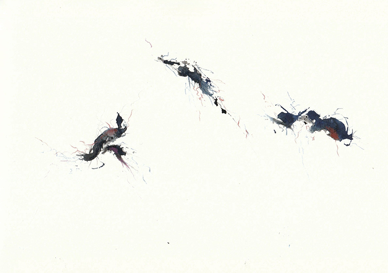 アニア プセニツニコワ、デイヴィッド トゥープ両氏によるイメージワークスの展示は、風景の中で捉えられた(身体と音の)ムーヴメント/サウンド ワークのフォトグラフィーと、墨象を想わせる瞑想的な水彩ドローイングなど数十点で構成されます。
