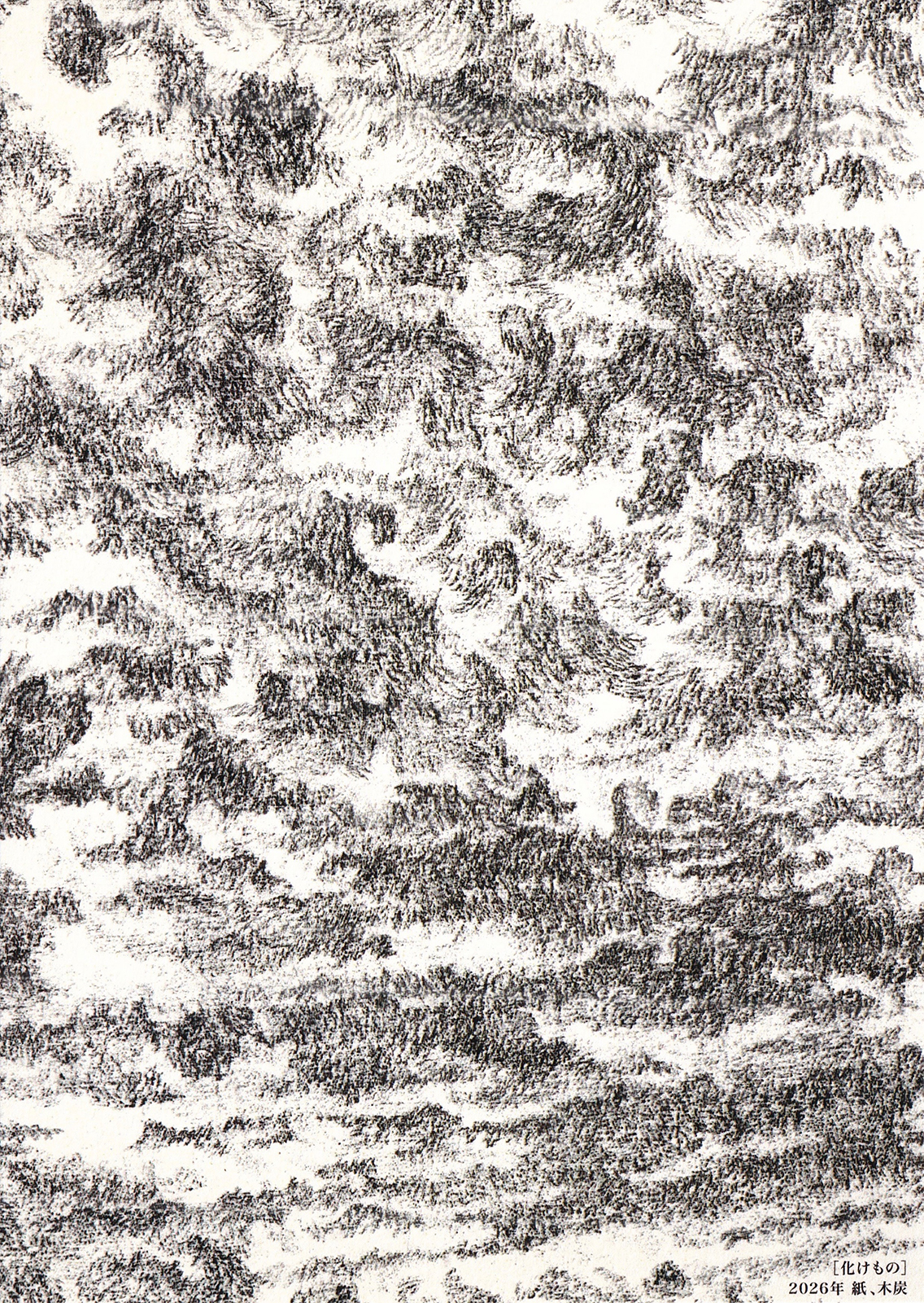 風景を描いています。空、そこに浮かぶ雲。海や川、その水面。時には建物や鳥の姿も描きます。それは私自身の外側を過ぎ去る時空間の事物事象ですが、観察と描画のプロセスを通しイメージとして内面化され、また時にはそのイメージに再び包まれるような感覚を覚えることもあります。内なるイメージに自身が包まれるというのは物理的にはおかしなことですが、例えて言うなら靴下を裏返しにして履き直すような感じです。絵のイメージは自身の内側と外側がひっくり返る時、あるいは浸透し合う時、その界面に表れるもののような気がします。