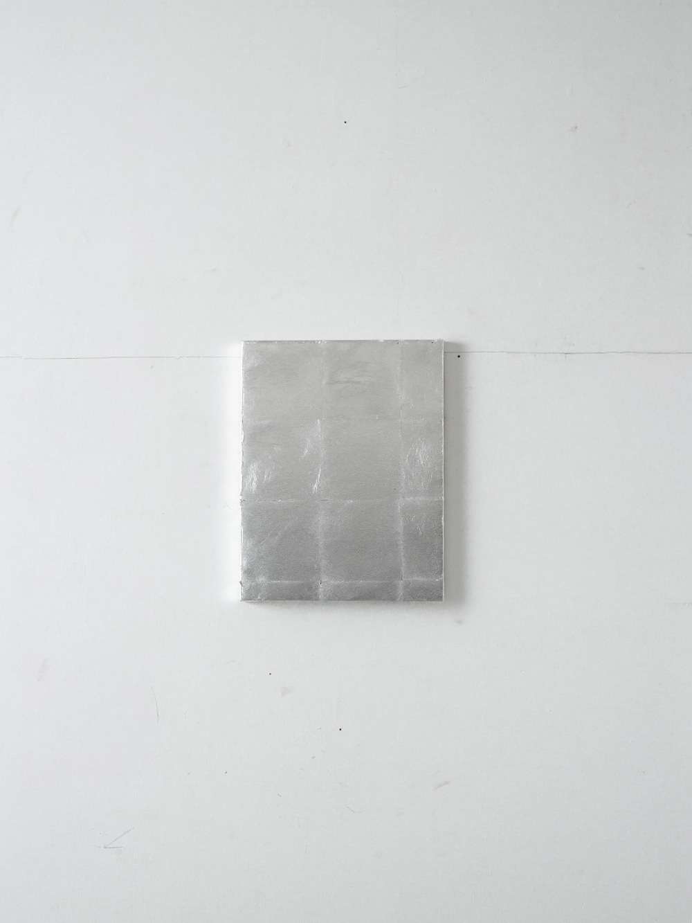 主要な素材である銀箔は、温度や湿度、空気中の硫黄などの環境条件に反応し、不可逆的な変色を起こす素材です。古くから劣化として忌避されてきたこの性質に対し、福田は制御や固定を試みるのではなく、素材が自律的に示す物質性と、その変容の痕跡を受け入れています。環境との関わりのなかで銀箔が獲得する時間性──ゆっくりと色調を深め、やがて崩壊へと向かう過程──は、人間の生の時間と重なり合い、不可視の自然現象を可視化します。福田にとって制作とは、自然に介入する行為ではなく、自然と素材が生成し変容していくプロセスをともに経験し、観察し、記録することにほかなりません。人の手が加えられた瞬間から進行する不可逆的な変化そのものが作品の本質となり、鑑賞者に時間の流れや環境との関係、そして物質の生のあり方を身体的に喚起します。