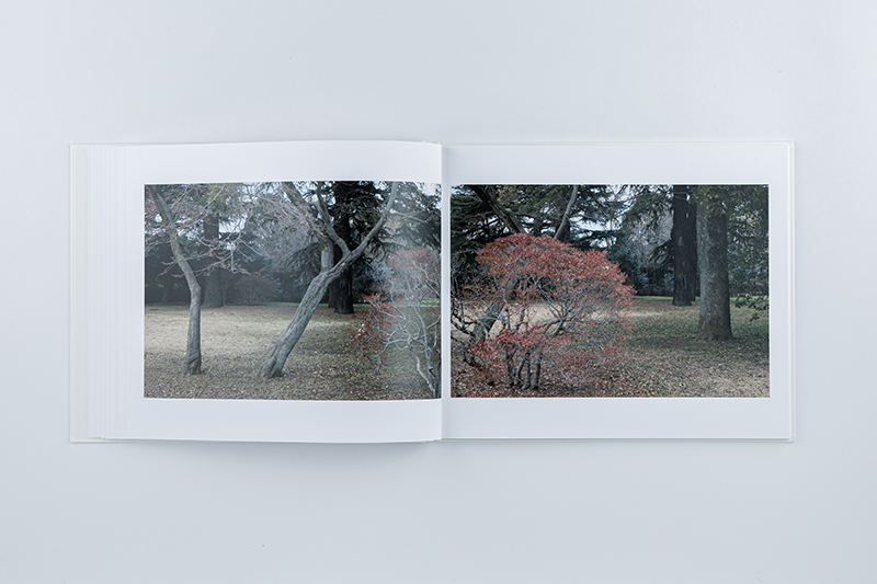 植物が色めき立つ時節を避け、強い陰影が生み出すエモーショナルな表情を排し、丹念に掬い取られた静かな光景は、どこか夢のような不思議な浮遊感を湛えています。加えて、公園内に遺構として残された巨大な煙突がさまざまな距離感で繰り返し現れることも相まって、読者はまるで迷路に入り込んでしまったかのような感覚に襲われます。