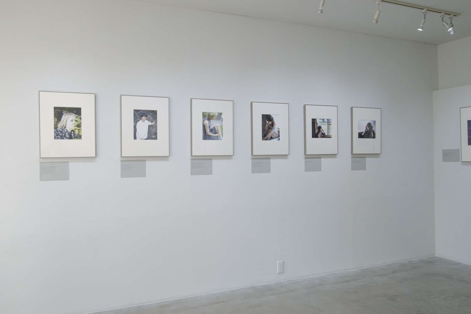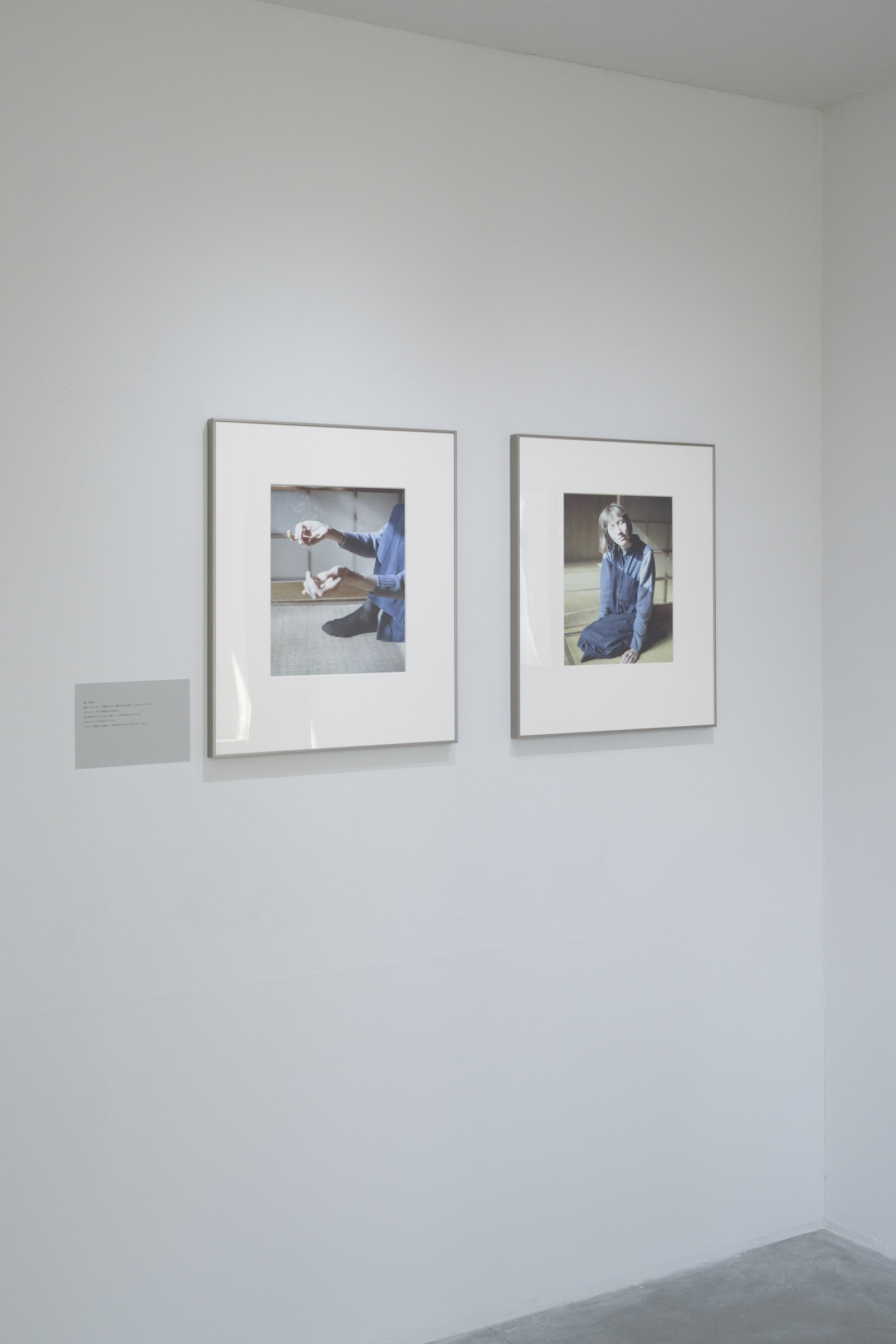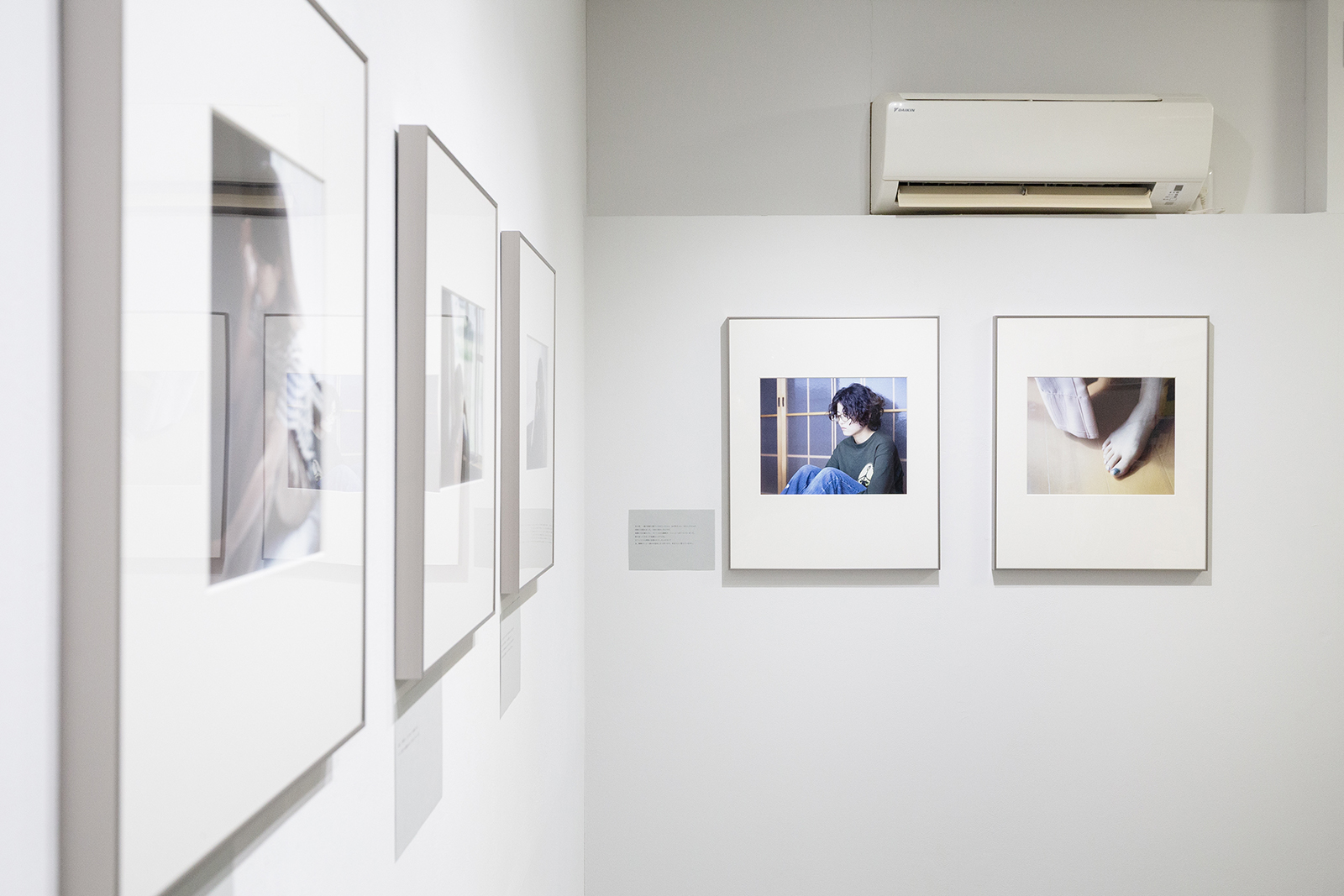 展示されていた写真にはどれも、ひとりのひと、異なるひとがうつっていた。ポートレイト、という用語がうかんだ。そして、そうなのだろうか?という疑問。うかんだ用語をいったんひっこめる。写真がおさめられた額縁の左下部壁面に、グレーの紙にプリントされたことばがあり、それを読みつつ、写真を見ていくことになる。ことばがなんであるかの説明はないが、それが、写真にうつっているひとの発言である、ということが自然と了解される。だが、ひとつ、ひとつ、進んでいくうちに、異なるそれぞれのひとから発せられたはずのそれらのことばが、まるで、ほかのひとりの、同一人物のことばであるように思われてきた。そして、うつっているひとと撮影者とのあいだで交わされたのかもしれない、この紙にはプリントされていないことばの波が寄せ、紙の上の文字をさらっていった。写真に目をやる。うつっているだれもカメラの方を見ていない。室内。屋外。カーテン。窓ガラス。透過。ひかり。束の間の居場所。ガラス障子を背に座ったひとの写真は2枚組になっていて、その右側の写真にうつっているのは素足の先の部分である。その足先は、2枚組の左側の写真のひとのものであると考えるのが理にかなっているかもしれない。わたしは、そうかもしれないし、そうではないかもしれないと思うことにした。写真にうつっていないもうひとりのひとが示唆されている。もうひとりのひとは、プリントされたことばの話者であるかもしれない。そう仮定してみる。会場ですこし話をした波多野にはそのことについてはなにも尋ねなかった。撮らせてもらった写真をあらためてパソコンの画面で確認すると、足先の部分にギャラリーの外の景色がうつり込んでいてほとんど見えなくなっていた。