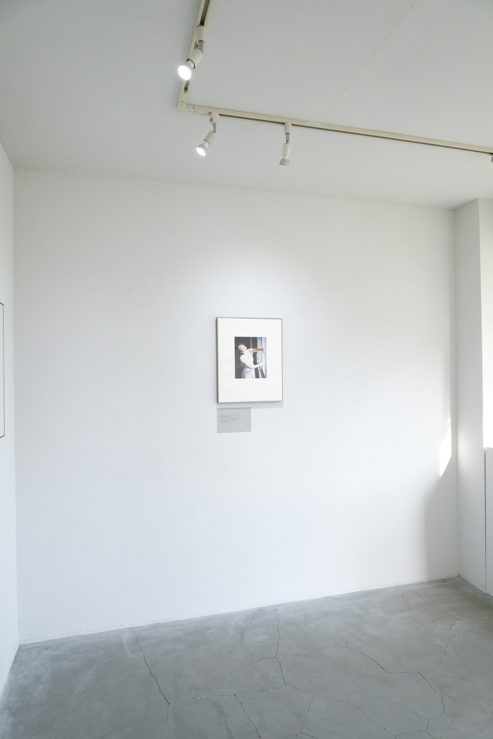8枚撮った会場の写真の、最後に撮った8枚目は、5回うつした作品の5回目であった。室内で窓ガラスを開けようとしているのだろうか、手をかけ、差し込むひかりがまぶしかったのかまばたきの途中だったのか目をつぶり、右斜め上を向いて首を傾けている。
